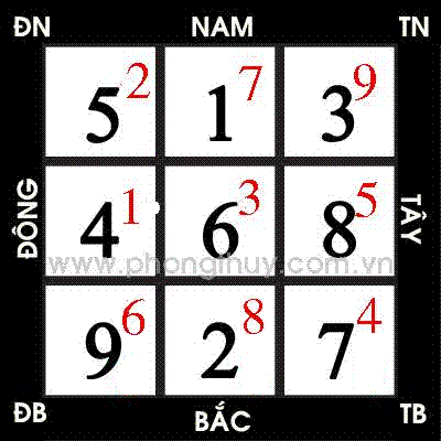 Bạn có thể nhìn thấy trong sơ đồ Cửu cung, chữ số to màu đen là biểu thị các sao của Năm, chữ số màu đỏ nhỏ góc trên phải là biểu thị sao của Tháng. Nếu bạn chưa từng xác định hướng nhà, văn phòng của mình thì hãy dùng 1 chiếc la bàn để xác định chính xác các hướng. Sau đó tham khảo các phân tích về Cửu Tinh phía dưới đây và bố trí các vật dụng cũng như tăng cường cát khí bằng cát vật khí Chiêu tài và đồng thời hoá giải các Hung sát có thể xảy ra.